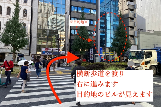 続く横断歩道を直進方向に横断し、さらに直進します。